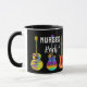 Celebre seus amigos ou familiares enfermeiros, seja eles se formando ou apenas fazendo um ótimo trabalho com esta divertida caneca de café Nurses Rock com guitarras psicodélicas coloridas e tipografia moderna de rock and roll. Guitarras elétricas e ilustrações detalhadas de violão em azul vibrante rosa roxo verde azul amarelo e laranja em um fundo preto. Arte original da artista Catherine Sweetman