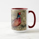 O faisão comum (Phasianus colchicus) também é conhecido como faisão ou faisão com pescoço de anel. É uma ave de caça bem conhecida. Introduzida na América do Norte, eles se tornaram bem estabelecidos e generalizados. Esta é uma foto de um faisão macho na grama do outono.