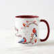 Uma elegante coroa de Natal de inverno com bagas vermelhas e pequenos pássaros bonitinhos cercados com caneca de estrelas ouros. A frase "Feliz Natal" é colocada numa elegante letra de caligrafia manuscrita. Personalize esta caneca com sua foto e texto.