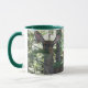 Uma caneca de café de grande porte, cerâmica, para suas bebidas quentes ou frias, que mostra a foto de uma floresta alerta, Mule Deer. A imagem é impressa em ambos os lados da caneca. Selecione o estilo e a cor da caneca.