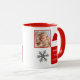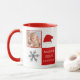 A primeira caneca de Natal do Santa Hat Floco de Neve. Fundo vermelho e branco com um belo floco de neve e um chapéu vermelho de Papai Noel. Celebre o primeiro Natal do seu bebê com um toque personalizado! A primeira caneca de Natal deste bebê é a maneira perfeita de criar uma memória duradoura. Foto personalizada, flocos de neve e um Papai Noel vermelho irão adicionar um toque divertido e alegre na caneca, enquanto a foto personalizada a torna realmente única e especial.
