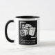 Uma fotografia vale mil palavras fotografia café Mug. Design de caneta preto e branco personalizado com aspas inspiradoras e câmera em desenho de foco. Personalize com seu próprio texto e imagem opcionalmente. Ideias de presente únicas para fotógrafos, colegas, patrões, profissionais, hobbyistas, etc.