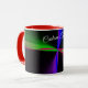 This geometric coffee mug features a trendy colorful four-way wave pattern. This product offers custom text editing and pairs well with other in-kind series design products. Additional mug color options are available.
