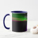 This geometric coffee mug features a custom colorful four-way wave theme modern design. Text customization and additional mug colors features are available.