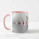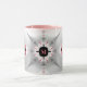 Esta caneca feminina moderna apresenta uma arte fractal simétrica abstrato em gradiente cor-de-rosa e prata (cinza). Personalize-o com um monograma de cor rosa correspondente.