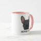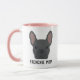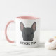 Esta caneca de café Bulldog francesa faz o presente perfeito para Dia de as mães e aniversários. É ideal para dar a uma mãe de cão do seu amado francês. A design apresenta uma ilustração azul bonita do rosto do Bulldog Francês com "Frenchie Mãe" escrito por baixo. A redação pode ser alterada para seu gosto. Design também disponível com diferentes faces de Bulldog Francês.