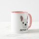 Esta caneca de café Bulldog francesa faz o presente perfeito para Dia de as mães e aniversários. É ideal para dar a uma mãe de cão do seu amado francês. A design apresenta uma ilustração bonita do rosto do Bulldog francês branco com "Frenchie Mãe" escrito por baixo. A redação pode ser alterada para seu gosto. Design também disponível com diferentes faces de Bulldog Francês.