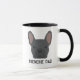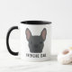 Esta caneca de café Bulldog francesa faz o presente perfeito para o Dia de os pais. É ideal para dar a um Pai de cão do seu amado francês. A design apresenta uma ilustração azul bonita do rosto do Bulldog Francês com "Pai Francês" escrito por baixo. A redação pode ser alterada para seu gosto. Design também disponível com diferentes faces de Bulldog Francês.