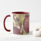 Caneca Fruta de maçã vermelha e folhas de aquarela