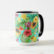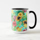Caneca Frutas tropicais, flores e folhas em azul