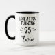 Mark a milestone birthday with a mug that delivers both charm and cheeky humor! This fun design reads “Look at you turning 25 twice,” blending bold, playful fonts with a festive party hat illustration that adds just the right touch of celebration. Whether it's for a 50th birthday, a 40th, or any other age you want to double up, this design makes people smile and laugh every time they sip their favorite drink. A perfect gift for someone who’s young at heart — and proud of it! Great for friends, family members, or coworkers who appreciate clever birthday humor and personalized touches. A standout mug for any party, office, or cozy morning at home.