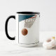 Uma caneca de basquete criativa com arcos e linhagem engraçada. Para personalizar o texto de edição para adicionar o nome do jogador de basquete, treinador. fã de esportes em equipe ou amante de bola.