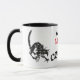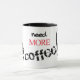 This mug will bring a smile. The image is of a fierce cartoon black cat that is aggravated and looks ready to claw someone's eyes out! The text in the center in red and black says "Need more coffee." The cat image is printed on two sides. Cute!