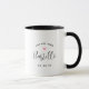 A caneca de café noiva personalizada "A futura Sra" feminina apresenta um texto preto moderno que pode ser personalizado com o sobrenome casado da noiva e a data do casamento. Inclui um sotaque cardíaco rosa fofo. Faz um presente perfeito para a noiva recém-noiva!
