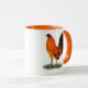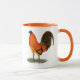 A cor vermelha do galo do gamecock do gengibre tem um tom impetuoso do vermelho alaranjado, contrastando com preto na cauda e nas asas. Comissão por Kenny Troiano para seu livro em cores da galinha de jogo.