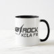 Esta caneca de café do na moda caracteriza a identificação da estação com um fundo branco e o melhor do logotipo do cabelo e o endereço da Web na parte traseira.