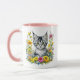 Ai art retratando uma adorável gatinha de cinza fofa, abrigada por gato cercada por bonito flores amarelas e cor-de-rosa, feitas em estilo aquarela. Adicione o nome na área de personalização. Esta caneca diz tia, mas você pode mudar isso para um nome ou outro membro da família.