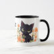 Caneca Gatinho Preto Cute Personalizado com Flores