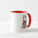 Gato Festivo Bonito Feliz Natal Nome Personalizado Feriado Coffee Mug apresenta o texto "Feliz Natal" na tipografia moderna, acentuada com um gato bonito vestindo um cachecol vermelho e chifres com seu nome personalizado abaixo. Perfeito para presentes de Natal, festas de Natal e festas de Natal, aniversários e muito mais. Criado pelo Evco Studio www.zazzle.com/store/evcostudio