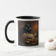 Caneca de café do Halloween com gato preto e uma abóbora com rosto assustador de cabeça para baixo.