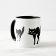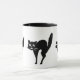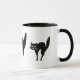 Esta foto de Halloween de um gato preto engraçado com suas costas arregaladas de medo e choque parece excelente contra o fundo vermelho de sangue deste chá de Halloween ou caneca de café de legal qualidade, tenho certeza de que qualquer um que receba este gato preto engraçado original para o Halloween ficará agradavelmente surpreso.
