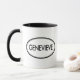 Verifique para fora esta caneca de Genevieve! É seu nome Genevieve? Ou você tem uma esposa, um namorada, um membro da família fêmea ou um amigo fêmea nomeados Genevieve? Em caso afirmativo, esta "caneca do selo conhecido" é exatamente o presente que você está procurando! As características de design "Genevieve" na rotulação preta grande cercada por dois ovals, um fino e um grosso.