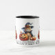 Miau! Adicione o Charme Whimsical à sua Mesa de Festa Festiva com esta Gata Gota Gira-Halloween! O Trabalho de arte apresenta um Gato Bonito de Tabby que esporta uma fantasia de Bruxas. Seu Jack-o-lanterno tem um Gatinho Bonitinho, saindo do topo da Pumpkin. O verso diz, "Feliz Halloween Jennifer!" Personalize esta Gata de Gato adicionando seu Nome de Adorado ou Sua Própria Frase!