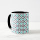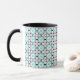 Padrão geométrico alegre com formas florais, quadradas e octogonais dispostas em forma de azulejo. Além disso, complementado com motins tipo petal e abstrato. Ele incorpora uma mistura de cores, na turquesa de tons, rosa, preto e branco. As cores contrastantes e o layout simétrico dão a este padrão uma sensação moderna, mas retrô.