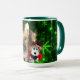 German shepherd Toy Reindeer Green Snowflakes Mug. Combine uma caneca de dois tons com imagens especiais de cães. O fundo verde de floco de neve realmente faz com que este adorável cão e brinquedo realmente se pop. Tenha um Feliz Natal com esse German shepherd e rena de brinquedo. Este é o meu doce German shepherd chamado Buddy.