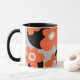 Padrão floral, vermelho e preto, estilo retrorreflector de 1970 vintage