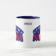 Você será uma orgulhosa mãe de ginástica com esta atraente caneca vermelha, branca e azul. A imagem colorida é impressa em dois lados, com seu nome ou outro texto personalizado em azul entre as imagens.
