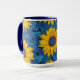 Padrão amarelo de girassóis sobre fundo azul. Pintura de impressionismo.