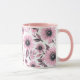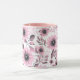 Uma bonito caneca de girassol rosa. Design apresenta um padrão uniforme de girassóis cor de água pastel floral cor de rosa sobre fundo branco.