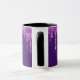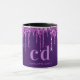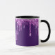 Uma caneca de moda e moda. Um fundo roxo profundo chico decorado com pingos de brilho sujo, aparência de pingar tinta. Personalize e adicione um nome e iniciais de monograma. Letras cor púrpura.