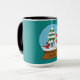 Uma ilustração de um globo de neve que apresenta uma linda paisagem de montanha de neve com cardeal vermelho vestindo um chapéu de santa vermelho, um boneco de neve vestindo uma fita vermelha e um chapéu de santa, e pinheiros. Este design de bonitinho de bonitinha de desenho animado é uma ideia presente para o inverno e natal, amantes da época de natal, amantes de pássaros e neve, e amantes de lóbulo e bola de cristal. Personalize ou personalize esta caneca adicionando seu próprio nome ou texto.