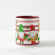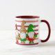 A mão desenhou a caneca de café verde e festiva dos Gnomos de Natal.