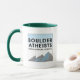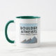 "Going to Hell in Every Religion" slogan with Boulder Atheists logo on 11 oz. mug.