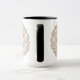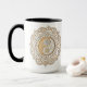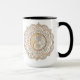 A symmetrical mandala design featuring intricate a yin yang floral pattern in gold and silver.