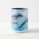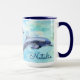 Esta linda caneca apresenta uma aquarela pintada de golfinhos sobre um fundo oceânico. Fácil de personalizar com um nome para um presente pensativo para o golfinho ou amante de os animais marinho!