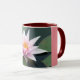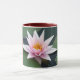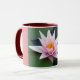 Uma bela aquíllia em suas folhas em um lago. Simples, calmo e bonito. Esta fotografia foi tirada num dia estático no auge da época de floração de Waterlily. Ame suas belas pétalas delicadas, mas fortes enquanto flutuam sem esforço na água. Um presente bonito e design individual numa caneca prática