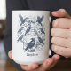 Defina o tom para um ritual matinal místico com esta caneca de cerâmica personalizada. O design apresenta uma reunião de corvos e caveiras altamente detalhados empoleirados entre galhos esqueléticos, todos centrados em torno de uma lua cheia brilhante. É a maneira perfeita de celebrar um evento com tema gótico ou um presente atencioso para um amante da natureza.