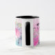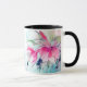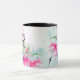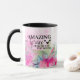 A caneca de café cristã representa uma bela aquarela floral com flores cor-de-rosa num fundo azul. Ele apresenta o amado Hino Cristão, "Graça Incrível, que som doce."