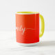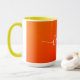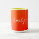 Fundo de gradiente laranja vibrante para uma caneca. Experimente a elegância de nossas fontes com belos balanços. Design de arte linda de Alma Wad. Personalize-o sem esforço com seu próprio texto ou nome. Melhore o seu nome com baloiços de na moda. Basta colocá-lo entre os símbolos fornecidos na seção de personalização.