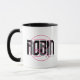 Este gráfico oferece uma reinterpretação contemporânea do emblema Robin, misturando elementos clássicos com sensibilidades modernas de design. O logótipo centra-se numa representação em negrito e geométrica da palavra "ROBIN", definida em branco estendido contra um fundo preto profundo, encapsulada num círculo rosa marcante que adiciona um contraste visual dinâmico. O círculo não só enquadra o texto como também o quebra, sugerindo o surgimento de Robin da sombra de Batman para estabelecer sua própria identidade. O uso do rosa acrescenta uma reviravolta inesperada, dando uma vibração nova e moderna enquanto ainda presta homenagem ao tradicional vermelho associado a Robin. Este design capta a essência da evolução de Robin como um personagem, misturando seu legado heroico com uma estética urbana elegante e adequada para uma nova geração de fãs.