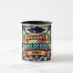 Uma design de caneca gráfica ousada anunciando "DEGREE UNLOCKED HOJE" em letras vibrantes e em camadas com elementos decorativos. Um boné de formatura se senta no topo, e uma marca de seleção adiciona ênfase à conquista. Um visual forte para o dia da graduação.