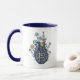 Esta design apresenta uma granada de mão segurando um buquê de flores.
