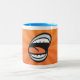 Rock and roll toda a noite com um cheio grande da caneca da boca da cafeína!