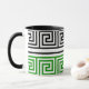 Green and Black Greek Key Fret Geometric Seamless Repeat Pattern Design On White Background
