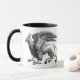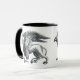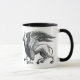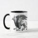 Caneca de café em uma imagem elegante de grifo, uma cruz mítica entre águia e leão, em preto e branco