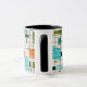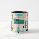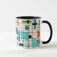 Este Ringer Grid e Starbursts Ringer Mug é onde o estilo vintage encontra o dia moderno. Apresenta um fundo creme colorido com kitschy, quadrados fora de kilter e retângulos em lacre, turquesa, Este azul claro, laranja e verde de abacate. Os blocos brancos de cor são sobrepostos e são trabalhados em algumas das interseções de grade. Há também retângulos pretos com linhas pretas verticais e horizontais formando um padrão de grade. Designs e quadrados de starburst pretos colocados esporadicamente através desta tapeçaria de cor moderna do meio século. Peguem suas botas de movimento e tocas de sino e desfrutem disso nos anos 60.